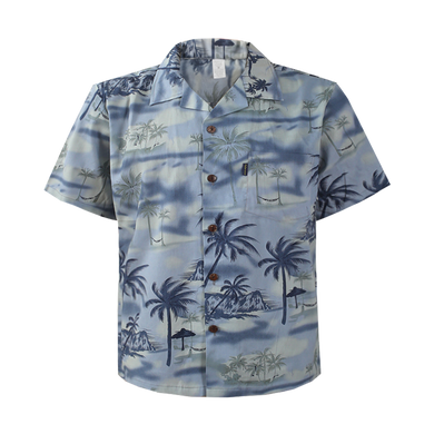 C90-A822 (Gray scenery), Men 100% Cotton Aloha Shirt