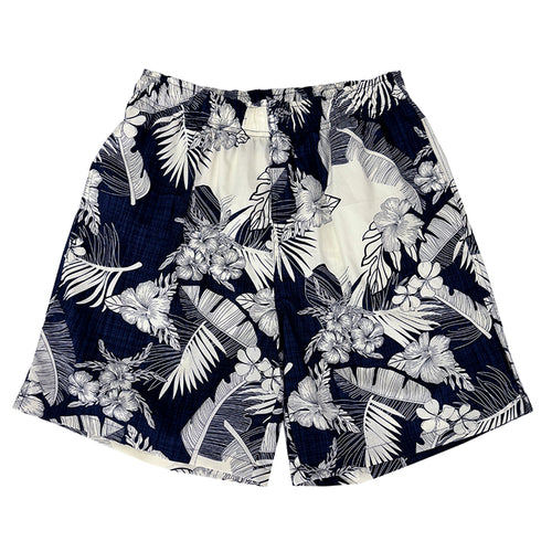 C90-T517 (Navy with cream floral), Men Cotton Swimtrunk