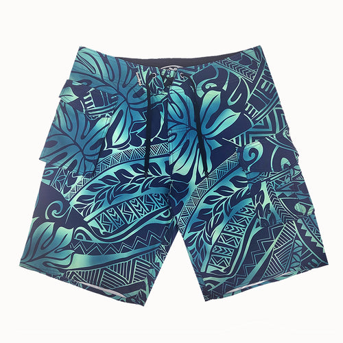 N90-B2412B (Blue tribal), Men Microfiber Boardshort (4 - way stretch) - Size 34‘ outseam is 22 inch.