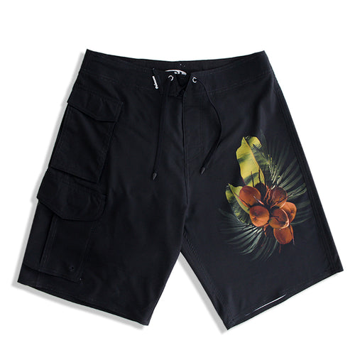 N90-B8062 (Monstera full-black), Men Microfiber Boardshort- (4-way stretch) - one pocket - Size 34‘ outseam is 22 inch.